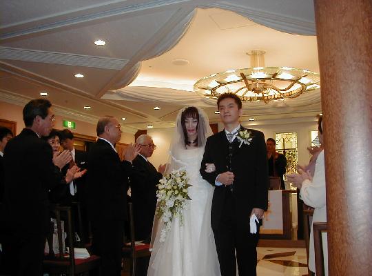 晴れて夫婦になった二人の姿です。式が始まる前に比べて